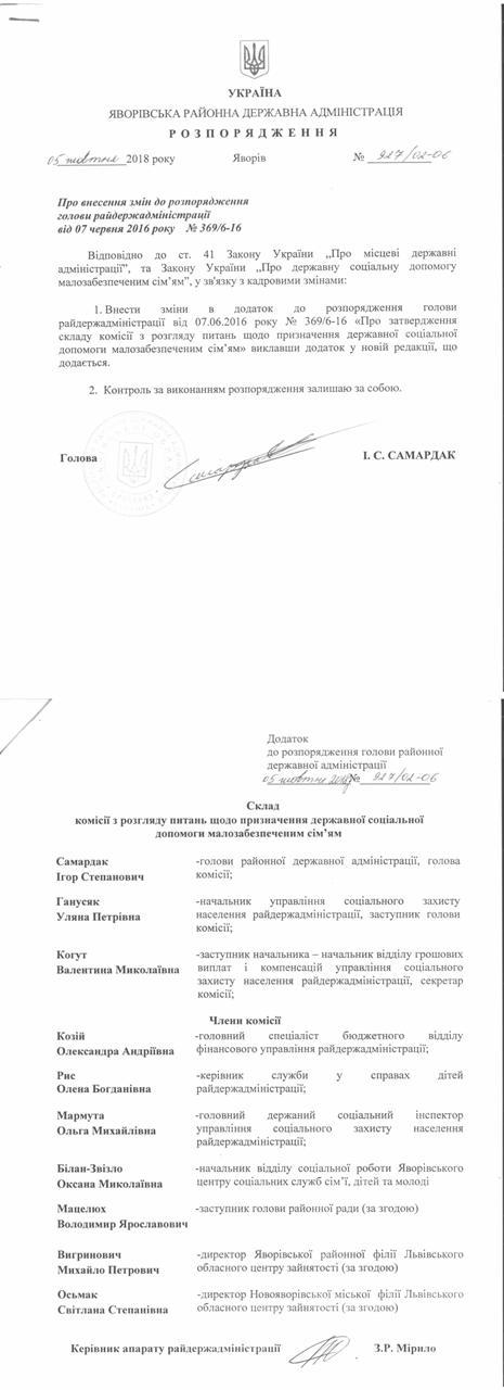№927/02-06 2018-10-10 Про внесення змін до розпорядження голови райдержадміністрації від 07 червня 2016 року № 369/6-16