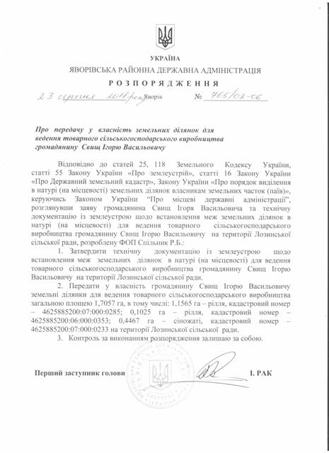 №765/02-06 2018-08-29 Про передачу у власність земельних ділянок для ведення товарного сільськогосподарського виробництва громадянину Свищ Ігорю Васильовичу