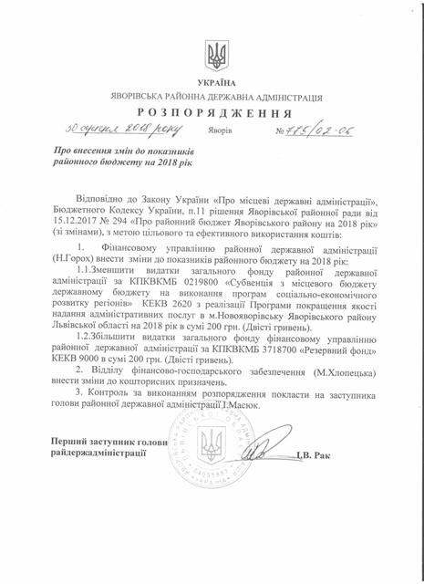 №775/02-06 2018-08-31 Про внесення змін до показників районного бюджету на 2018 рік
