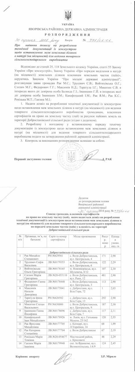 №782/02-06 2018-09-03 Про затвердження детального плану території земельної ділянки для дачного будівництва на території Мужиловицької сільської ради Яворівського району Львівської області