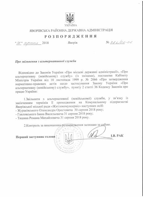 №786/02-06 2018-09-03 Про звільнення з альтернативної служби