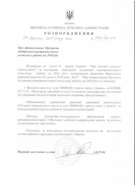 №790/02-06 2018-09-07 Про фінансування Програми підтримки агропромислового комплексу району на 2018 рік