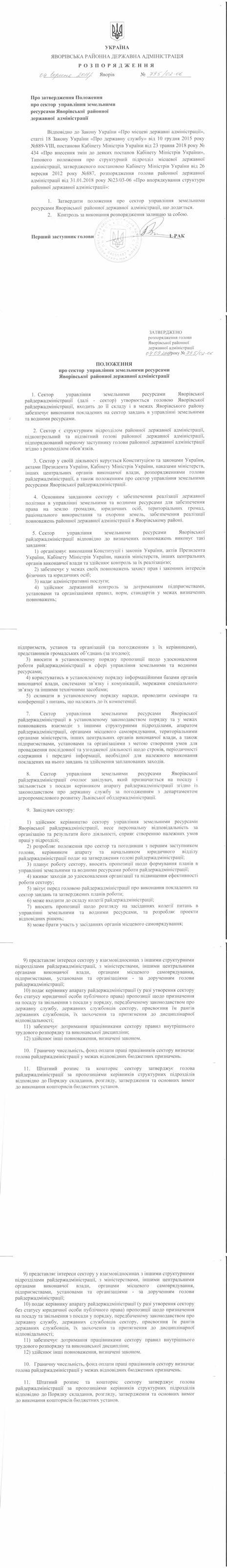 №795/02-06 2018-09-07 Про затвердження Положення про сектор управління земельними ресурсами Яворівської районної державної адміністрації