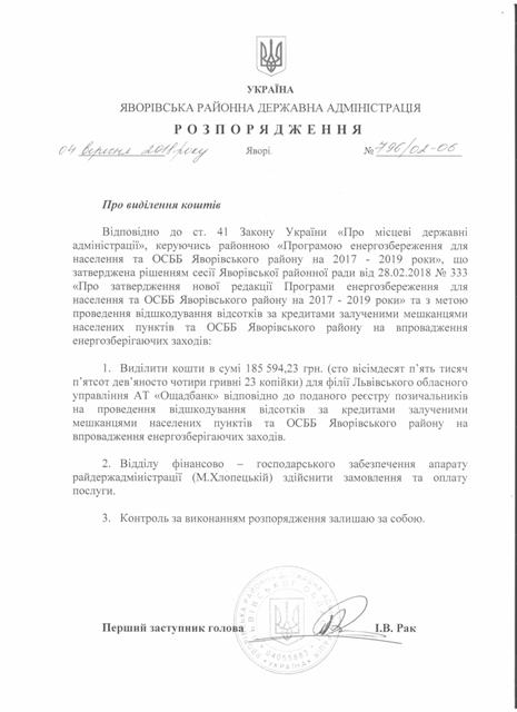 №791/02-06 2018-09-07 Про затвердження графіку упорядкування архівних документів органами місцевого самоврядування та установами для передавання на зберігання в архівний відділ Яворівської районної державної адміністрації
