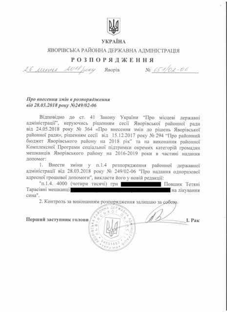 №668/02-06 2018-08-06 Про влаштування у Будинок дитини № 2 м.Львова