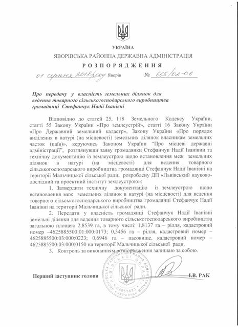 №665/02-06 2018-08-06 Про передачу у власність земельних ділянок для ведення товарного сільськогосподарського виробництва громадянці Стефанчук Надії Іванівні