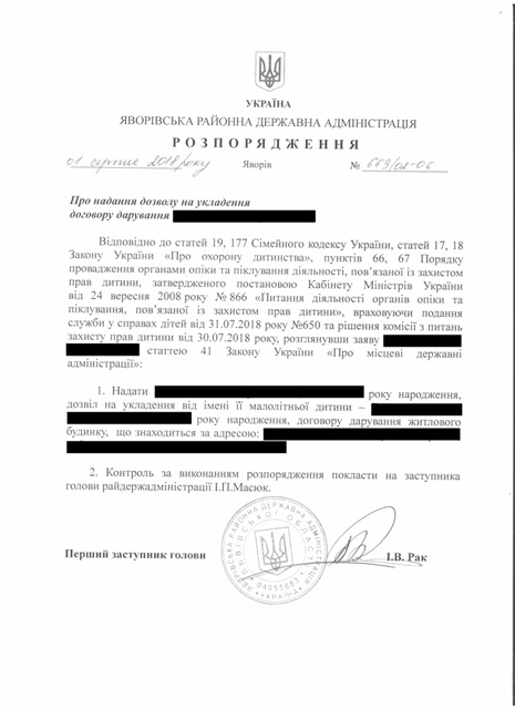 №669/02-06 2018-08-06 Про надання дозволу на укладення договору дарування