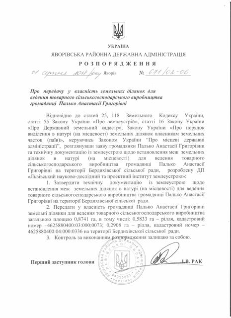 №671/02-06 2018-08-06 Про передачу у власність земельних ділянок для ведення товарного сільськогосподарського виробництва громадянці Палько Анастасії Григорівні