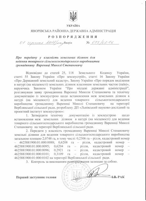 №673/02-06 2018-08-06 Про передачу у власність земельних ділянок для ведення товарного сільськогосподарського виробництва громадянину Варениці Миколі Степановичу