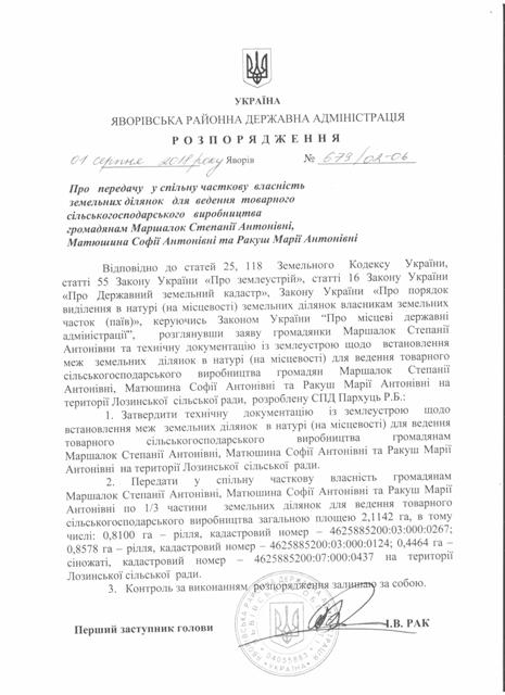 №679/02-06 2018-08-06 Про передачу у спільну часткову власність земельних ділянок для ведення товарного сільськогосподарського виробництва громадянам Маршалок Степанії Антонівні,Матюшина Сафії Антонівні та Ракуш Марії Антонівні
