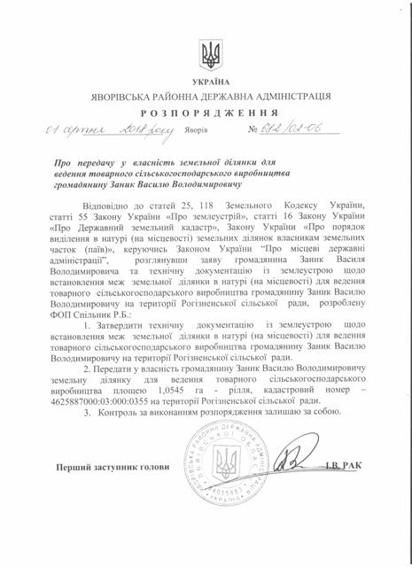 №682/02-06 2018-08-06 Про передачу у власність земельної ділянки для ведення товарного сільськогосподарського виробництва громадянину Заник Василю Володимировичу
