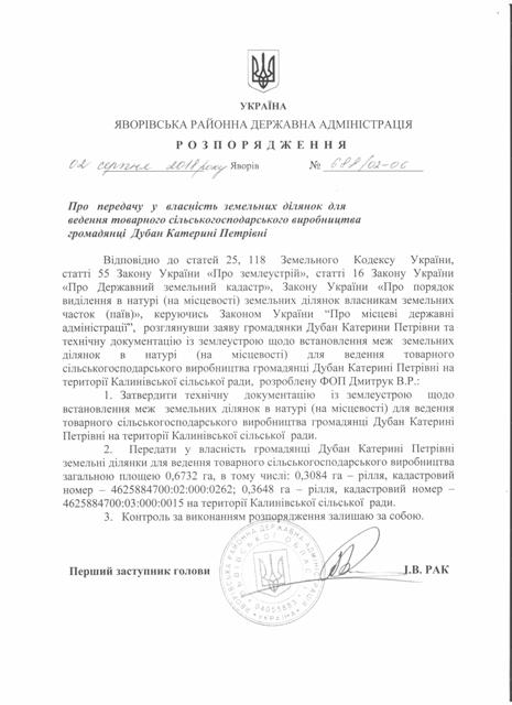 №688/02-06 2018-08-07 Про передачу у власність земельних ділянок для ведення товарного сільськогосподарського виробництва громадянці Дубан Катерині Петрівні