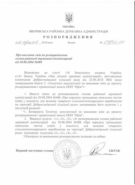 №691/02-06 2018-08-07 Про внесення змін до розпорядження голови районної державної адміністрації від 30.08.2004 № 488