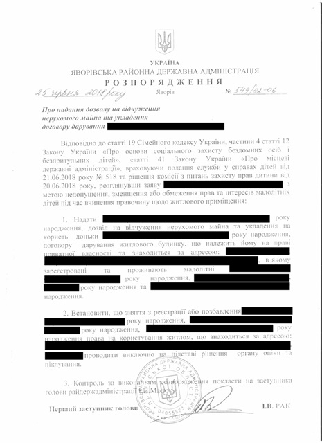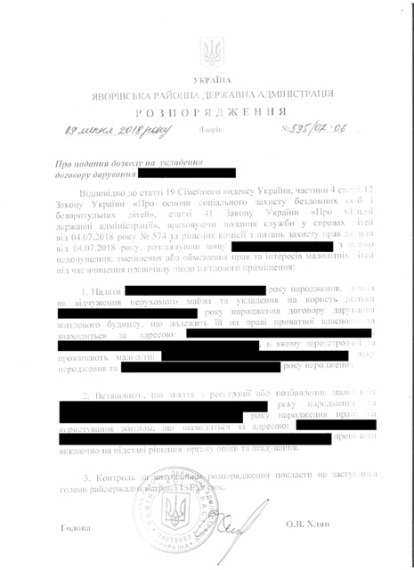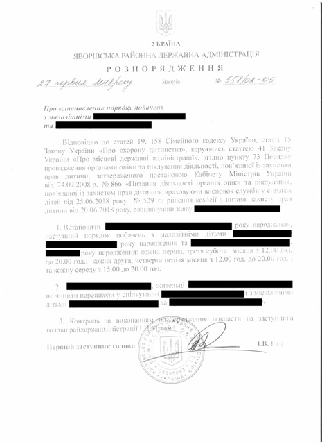 №558/02-06 2018-07-03 Про встановлення порядку побачень з малолітніми
