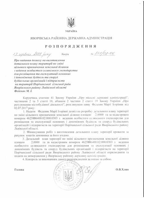№561/02-06 2018-07-04 Про надання дозволу на виготовлення детального плану території по зміні цільового призначення земеньної ділянки з ведення особистого селянського господарства для розміщення та експлуатації основних і допоміжних будівель та споруд будівельних організацій і підприємств на території Порічанської сільської ради Яворівського району Львівської області Феденяк М.І.