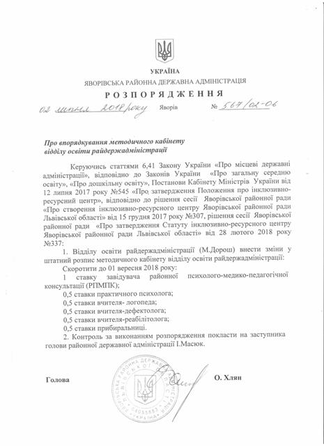 №567/02-06 2018-07-05 Про впорядкування методичного кабінету відділу освіти райдержадміністрації