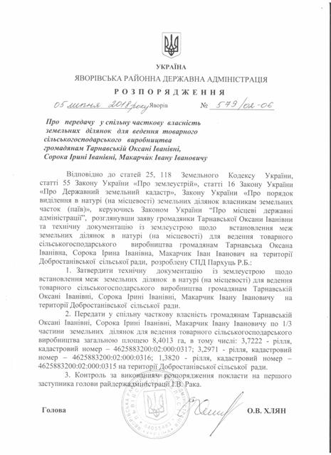 №579/02-06 2018-07-10 Про передачу у спільну часткову власність земельних ділянок для ведення товарного сільськогосподарського виробництва громадянам Тарнавській Оксані Іванівні,Сорока Ірині Іванівні,Макарчик Івану Івановичу