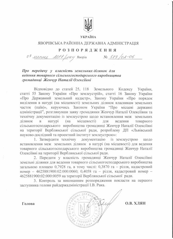 №589/02-06 2018-07-13 Про передачу у власність земельних ділянок для ведення товарного сільськогосподарського виробництва громадянці Женчур Наталії Олексіївні