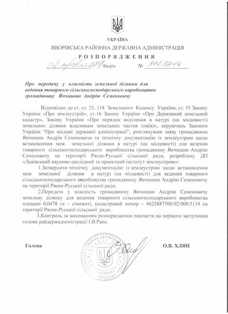 №342/02-06 2018-05-07 Про передачу у власність земельної ділянки для ведення товарного сільськогосподарського виробництва громадянину Янчишин Андрію Семеновичу