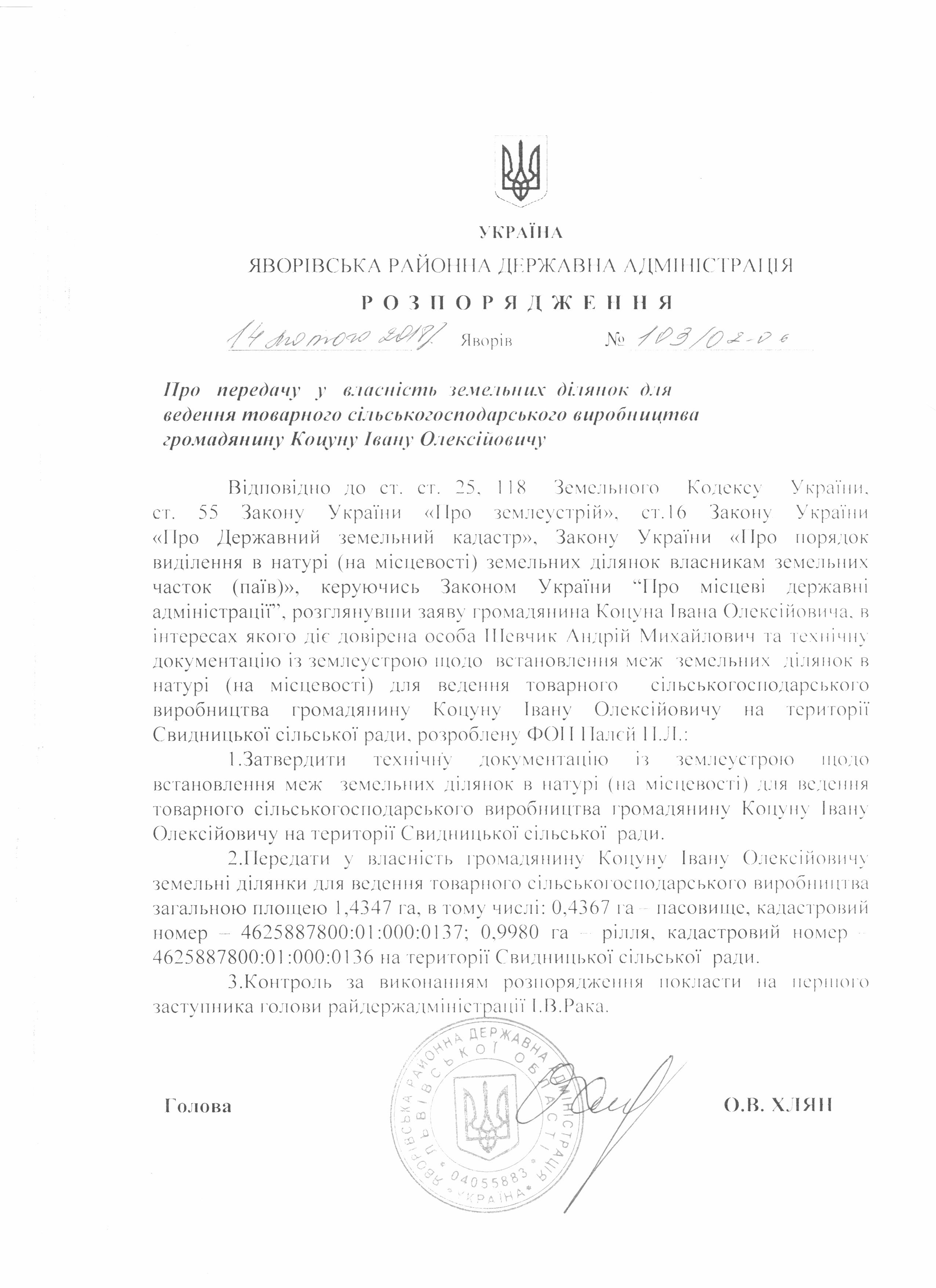 №103/02-06 2018-02-19 Про передачу у власність земельних ділянок для ведення товарного сільськогосподарського виробництва громадянину Коцуну Івану Олексійовичу