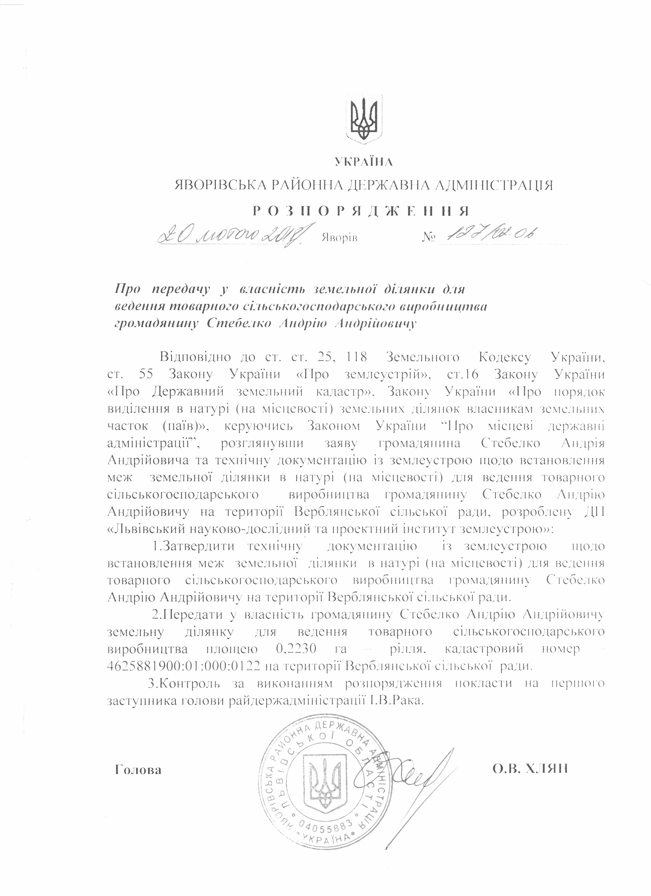 №127/02-06 2018-02-23 Про передачу у власність земельної ділянки для ведення товарного сільськогосподарського виробництва громадянину Стебелко Андрію Андрійовичу