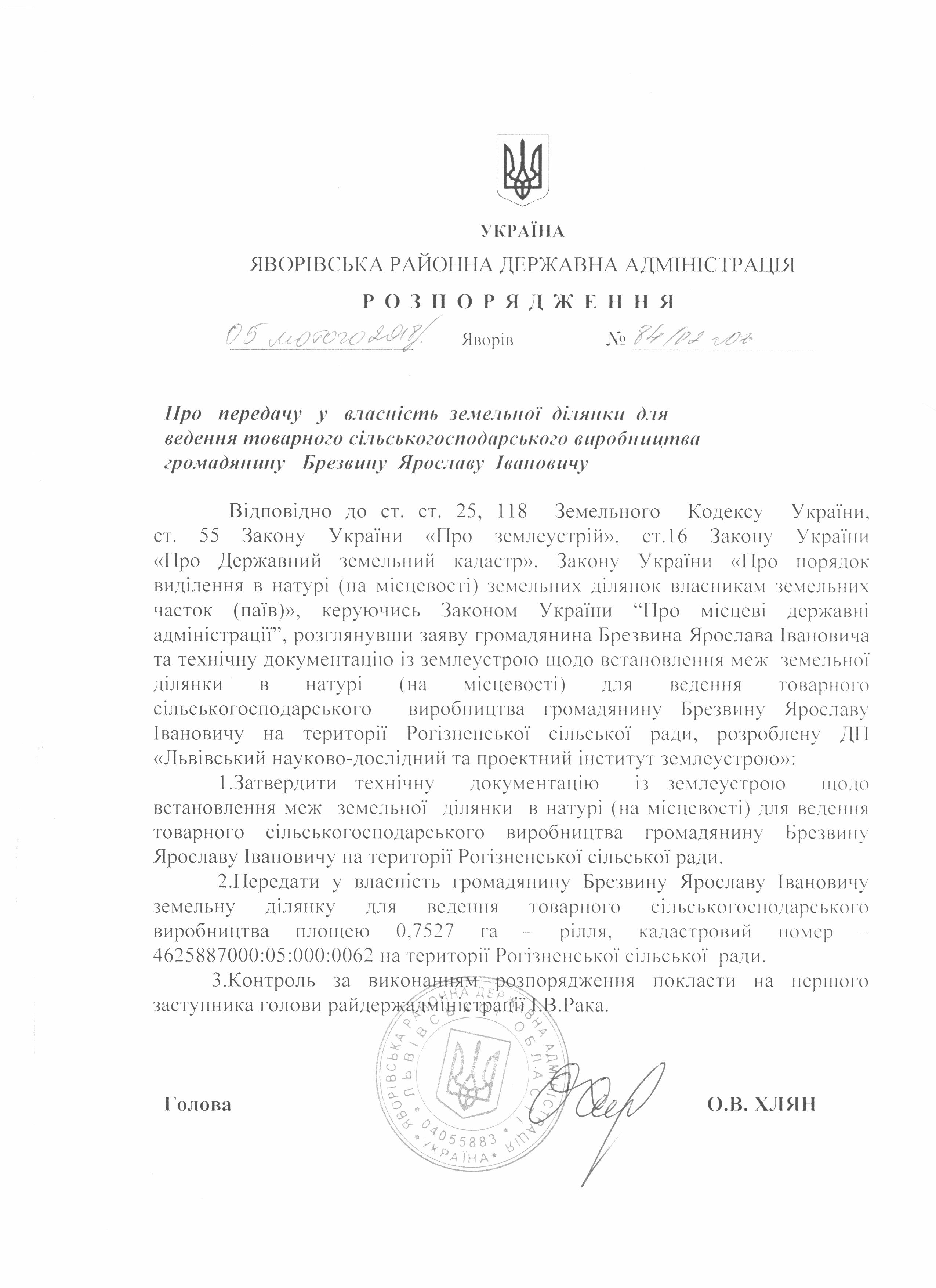 №84/02-06 2018-02-08 Про передачу у власність земельної ділянки для ведення товарного сільськогосподарського виробництва громадянину Брезвину Ярославу Івановичу