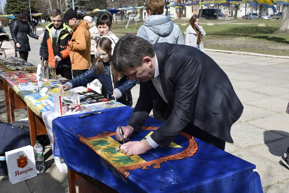 До численної колекції прапорів додалися і стяги з Яворова та Новояворівська з підписами та добрими побажаннями від жителів Яворівщини.