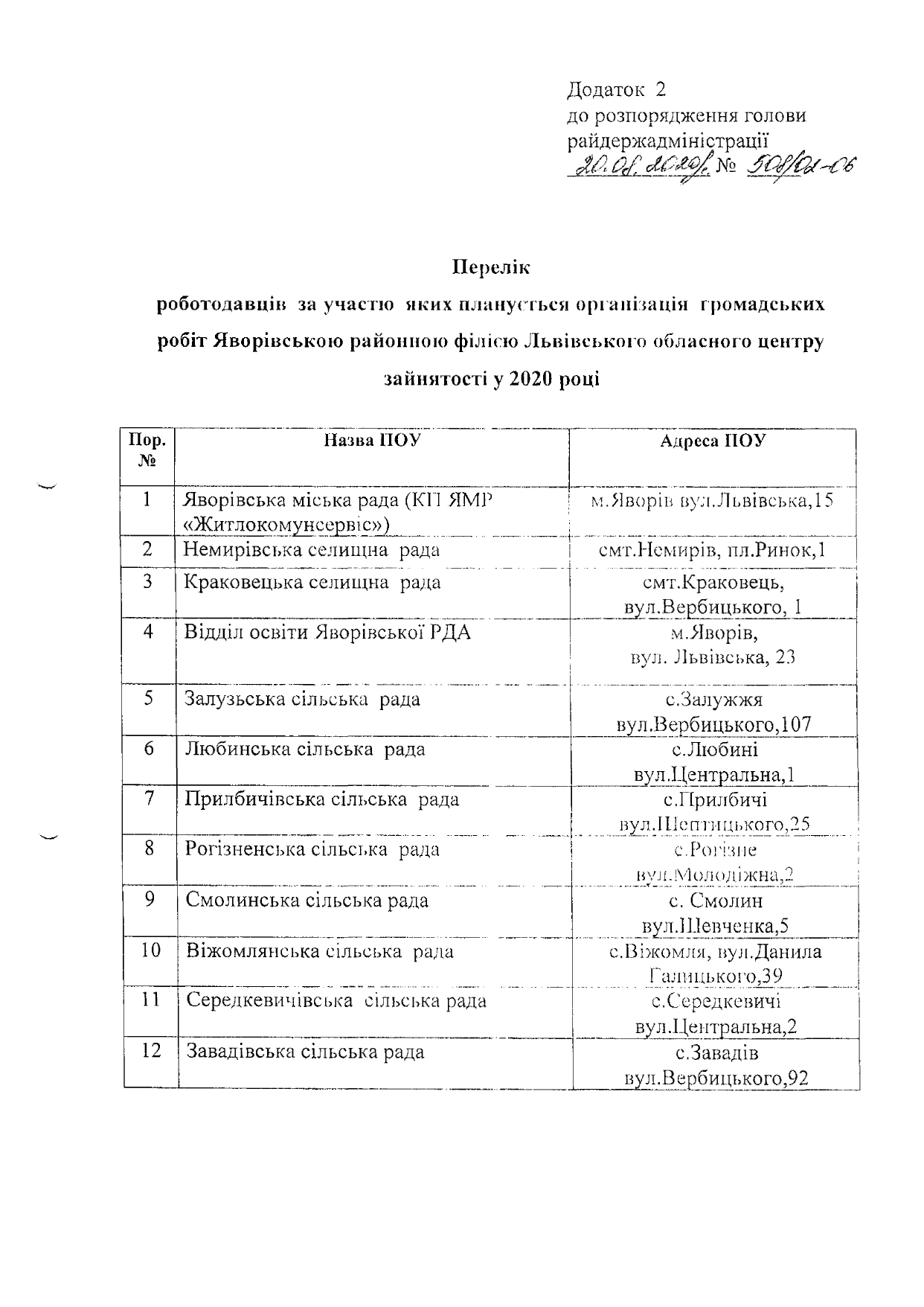 «Про організацію оплачуваних громадських робіт в Яворівському районі у 2020 році»